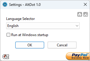 AltDot は、隠しファイルやファイル拡張子を、かんたんな操作で表示または非表示にすることができる、便利なアプリケーションです。設定画面から、Windows の起動時に AltDot を実行する かどうかも選択できます。