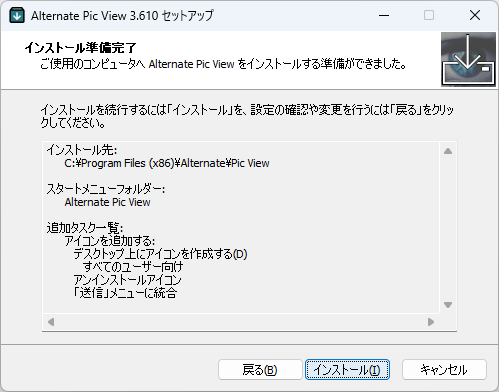 - インストールの準備ができました。[インストール]をクリックしてインストールを開始します。