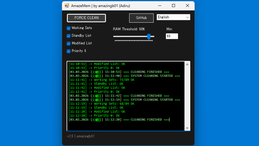 AmazeMem は、ゲーマーやパワーユーザー向けに設計された、高性能で軽量なシステムユーティリティです。