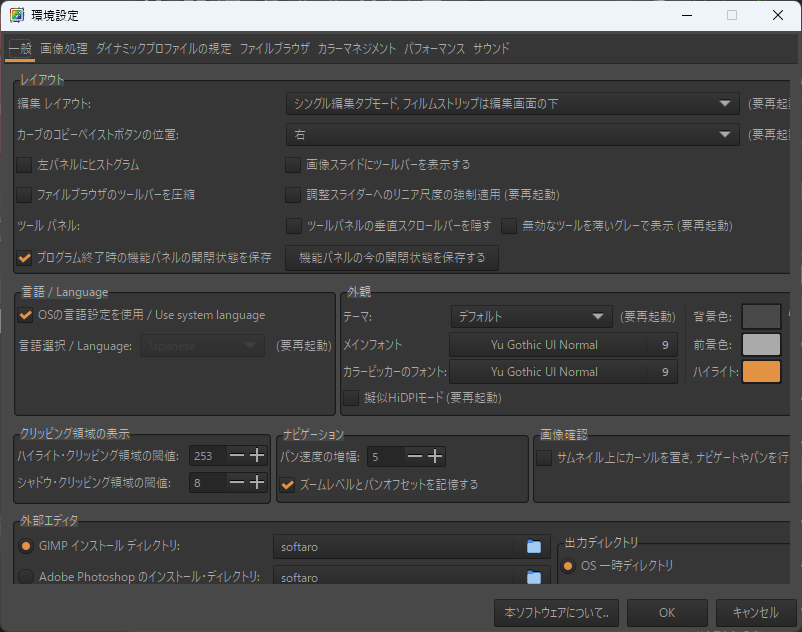 • 処理プロファイルには、 RawTherapee との競合を避けるため、.arp ではなく .pp3 の拡張子が付けられています。