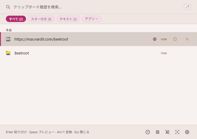 Beetroot は、Windows 標準の機能よりも優れたクリップボード管理機能を提供するクリップボートマネージャです。自動バックアップ機能を備えているので、PC を再起動してもクリップボードの内容は保存されます。
