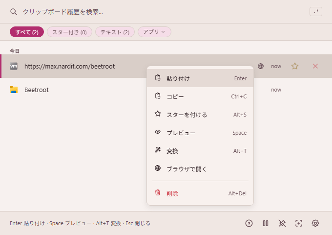 Beetroot は、クリップボードの内容、検索、AI 処理などにかんたんにアクセスできるクリップボートマネージャです。
