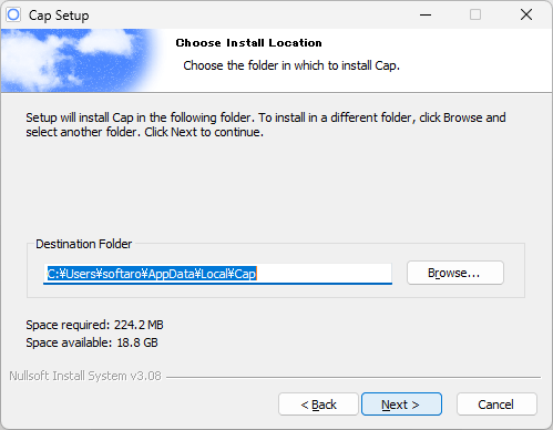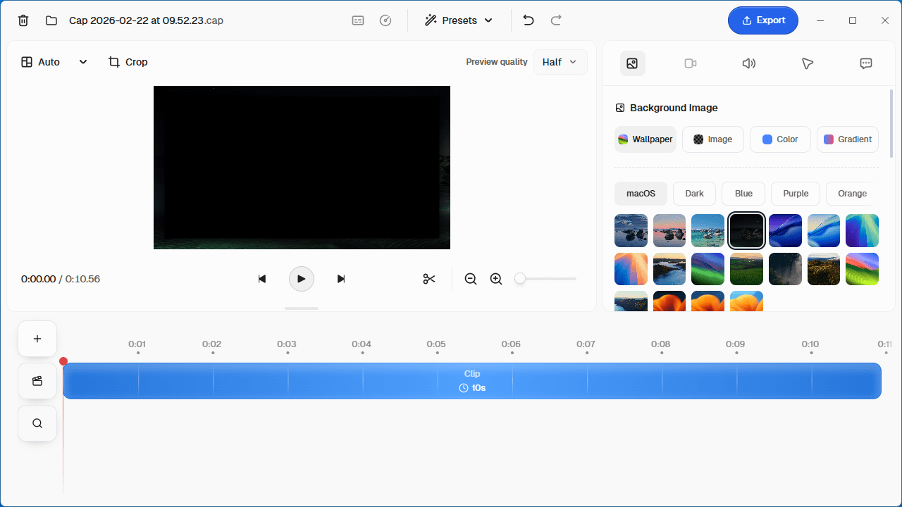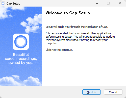 Cap は、ディスプレイ全体、特定のウィンドウ、指定した領域、カメラの画面を録画することができる、Windows および macOS 向けのフリーの画面録画ソフトです。