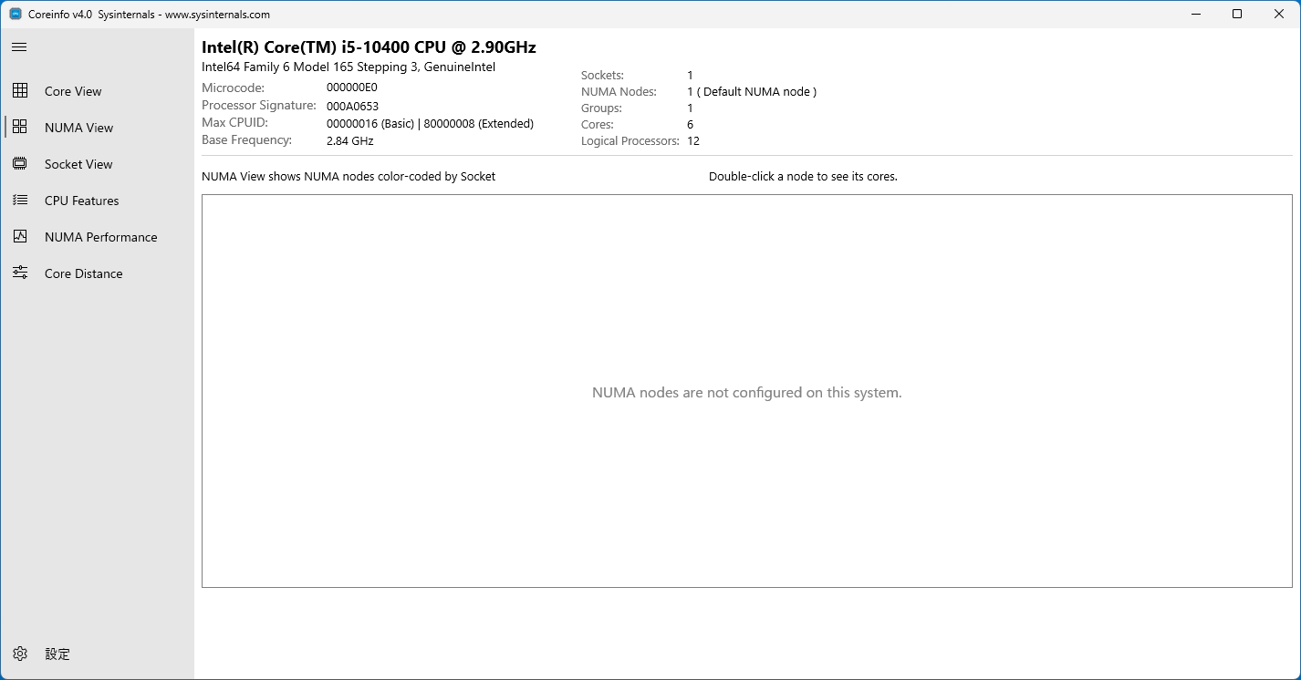 Coreinfo は、物理プロセッサ、システム、ノード、ソケットのメモリ構成に関する有用なダンプ情報を表示するアプリケーションです。