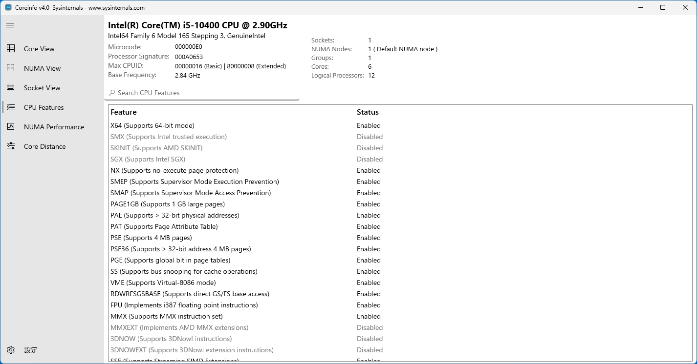 Coreinfo は、インストール不要で使用できるアプリケーションです。