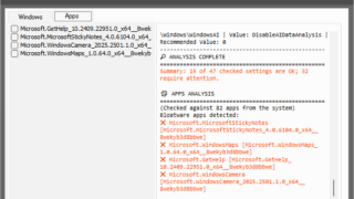 • Apps」タブでは、アンインストール可能なブロートウェアが表示されます。