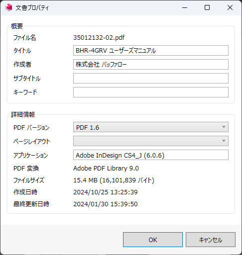 - 「プロパティ」では、PDF のプロパティ情報を編集できます。