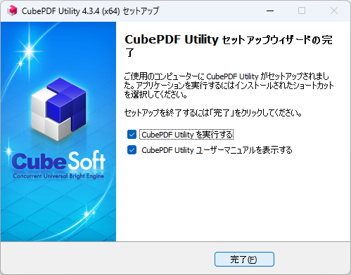 - [完了]をクリックしてセットアップウィザードを閉じます。