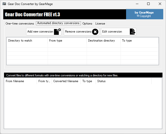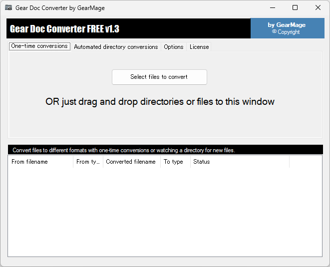Gear Doc Converter は、ドキュメントをほかの形式に変換するためのアプリケーションです。