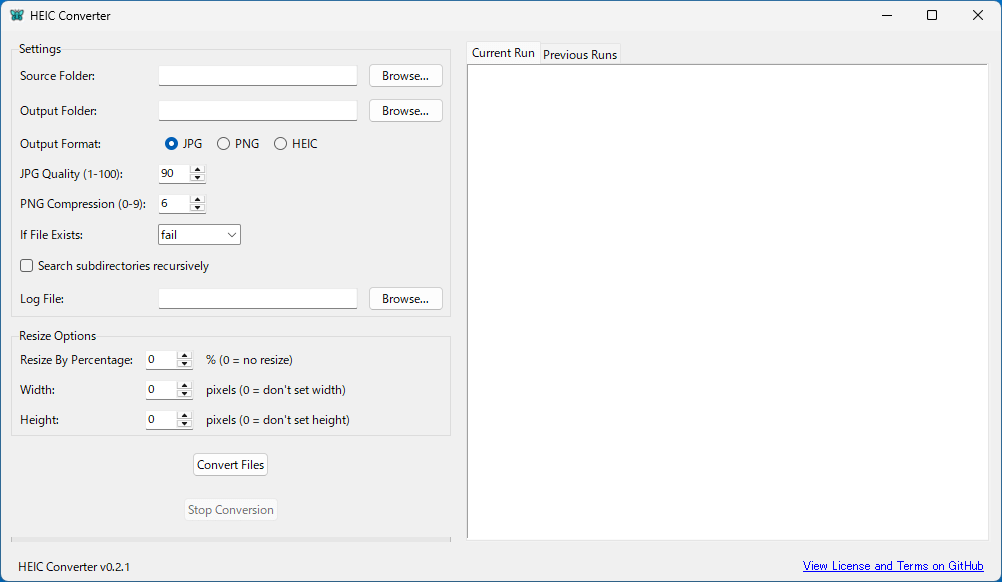 HEIC Converter は、指定されたフォルダ内の HEIC / HEIF 画像ファイルをスキャンし、画質を維持しながらファイルサイズを最小限に抑えながら PNG または JPG 形式に変換するアプリケーションです。