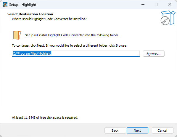 - インストール先を確認して[Next]をクリックします。