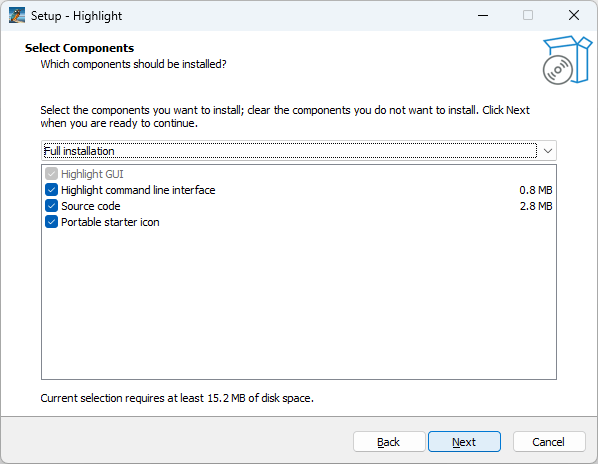 - インストールするコンポーネントを選択して[Next]をクリックします。