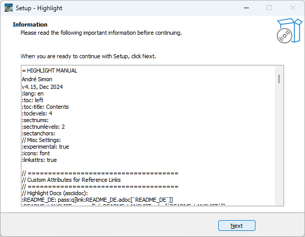 - ソフトウェアの情報が表示されます。[Next]をクリックします。