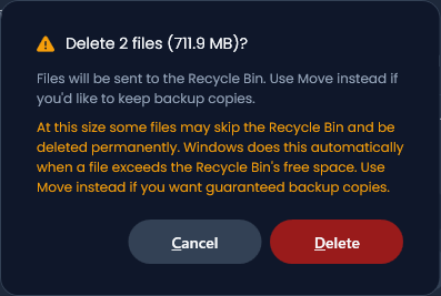- [Delete]ボタンをクリックすると、不要なファイルを削除(ごみ箱に移動)することができます。