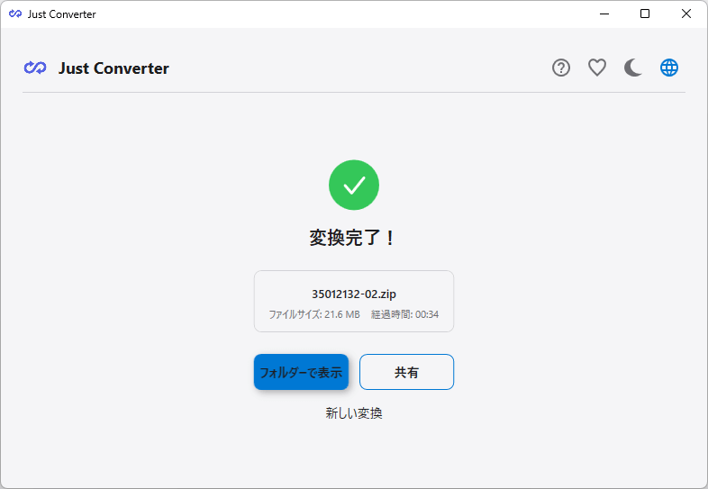Just Converter は、使いやすいインターフェースを備えている、プライバシーを重視するユーザーのために作られたファイル変換ソフトです。個人データーを漏洩する心配なく、さまざまなファイルを変換できます。