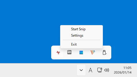 • アイコンの右クリックメニューから、設定にアクセスしたり、スニップを開始することができます。