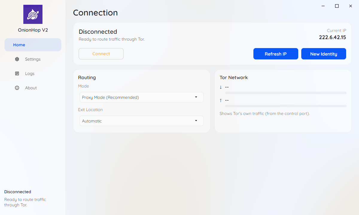 OnionHop は、Tor 経由でトラフィックをルーティングし、誰でもかんたんにプライベートで安全な匿名ブラウジングをすることができる Windows アプリケーションです。