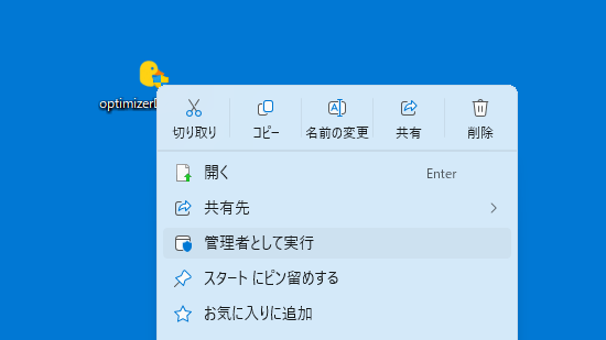- ダウンロードした EXE ファイルを右クリックし、「管理者として実行」します。