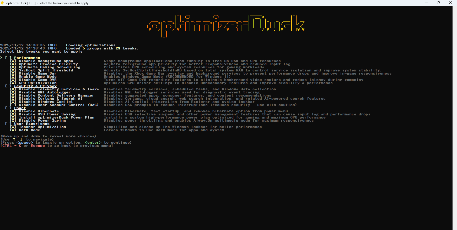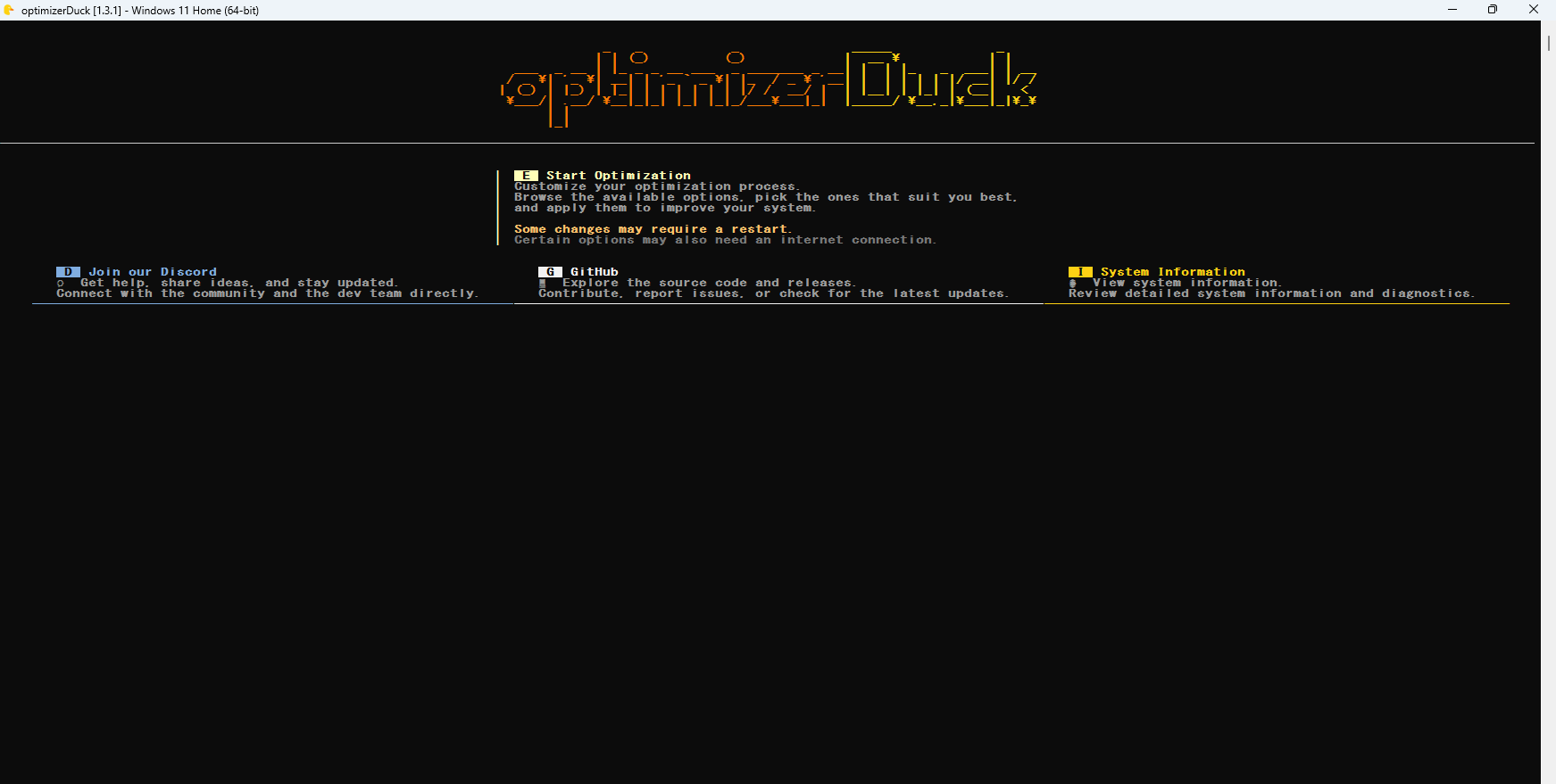 optimizerDuck は、パフォーマンスの向上、プライバシーの強化、シンプルさを重視して構築された、無料のオープンソース Windows 最適化ツールです。