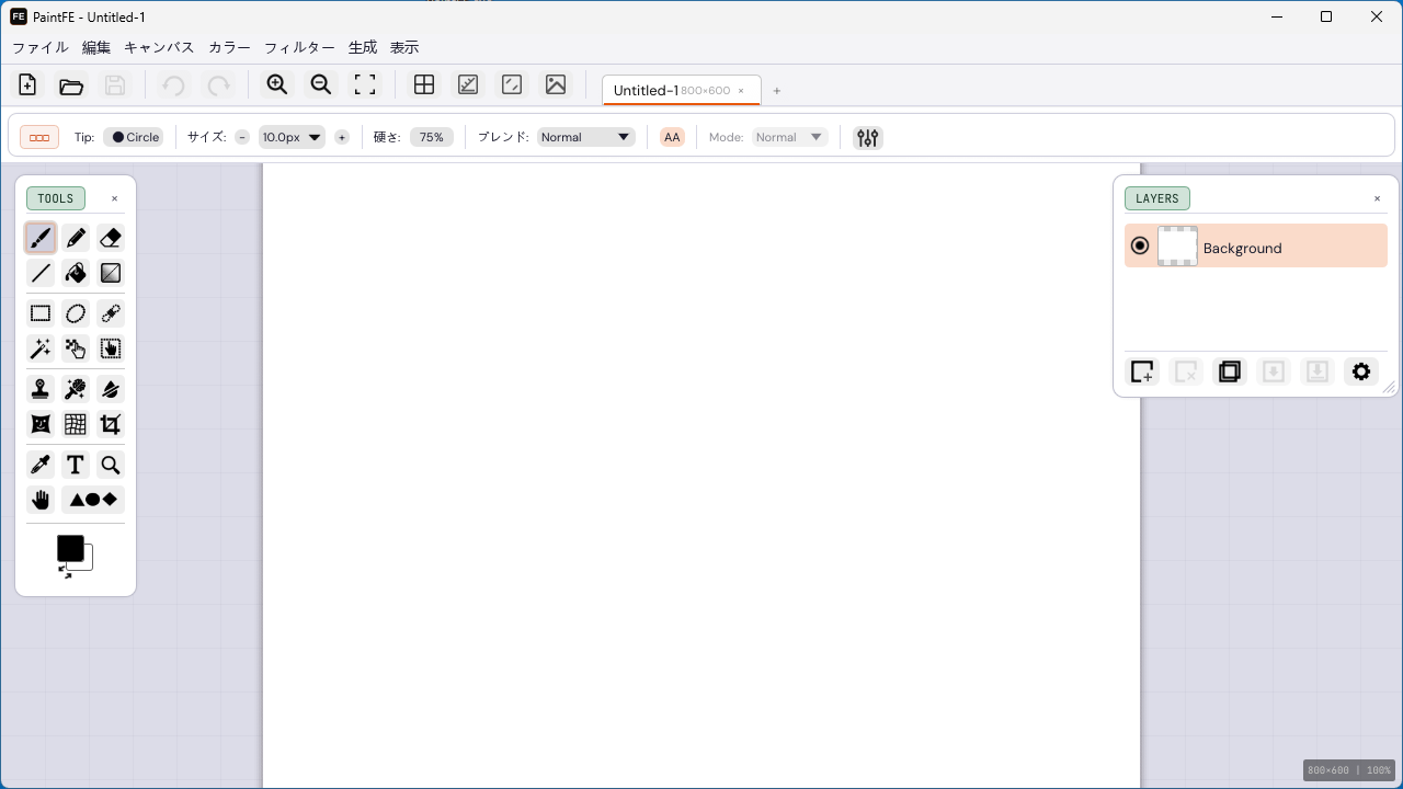 PaintFE は、軽量で高速な、クロスプラットフォームのフリーのラスター画像エディタ(ペイントアプリ)です。