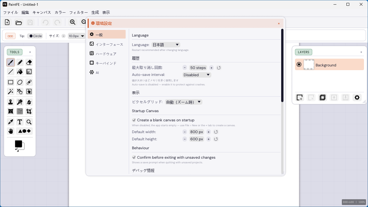 PaintFE は、高速なラスター画像エディタ(ペイントアプリ)です。