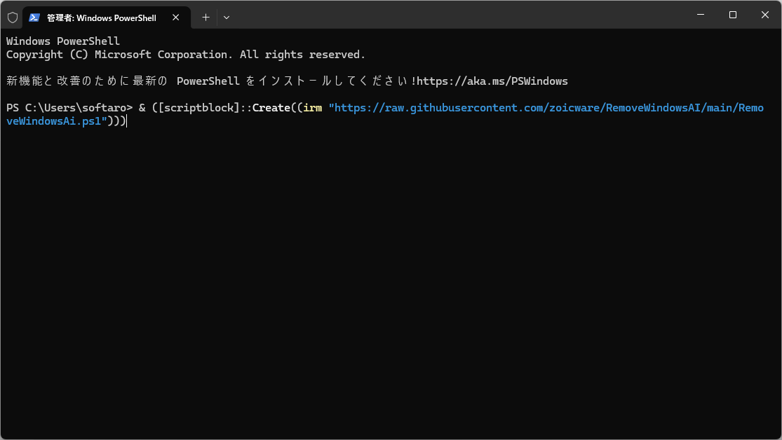 - ダウンロードした .ps1 ファイルを PowerShell で実行するか、PowerShell で下記のコマンドを実行します。