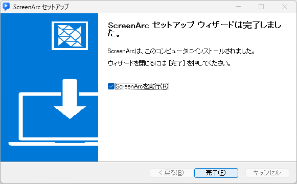 • インストールが完了しました。[完了]をクリックしてセットアップウィザードを閉じます。