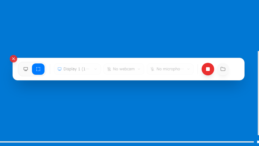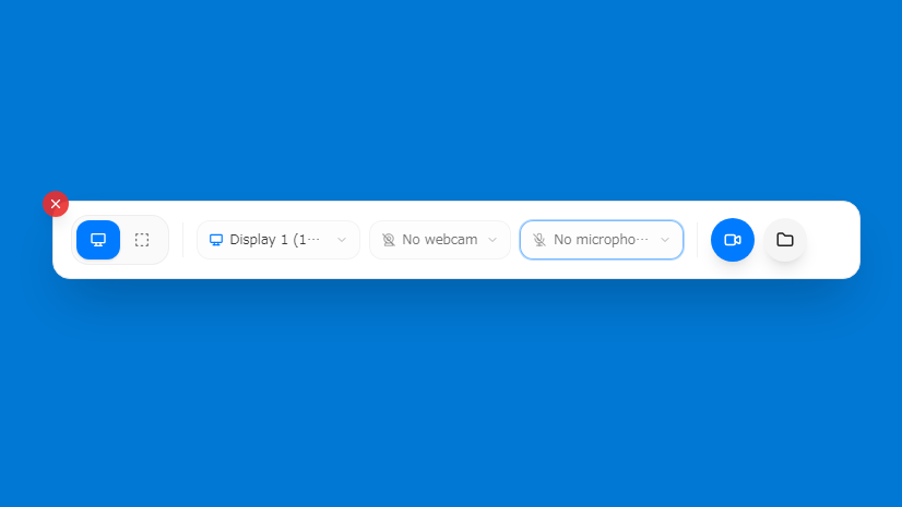 • 録画するエリア、ディスプレイ、Web カメラの有無、オーディオの有無を選択します。