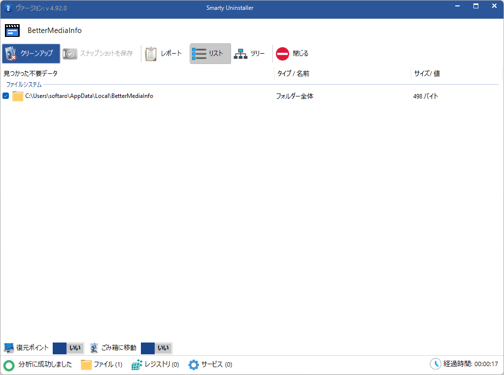 - Smarty Analyzer は、選択したアプリケーションが残した痕跡がないかコンピュータを徹底的にスキャンします。