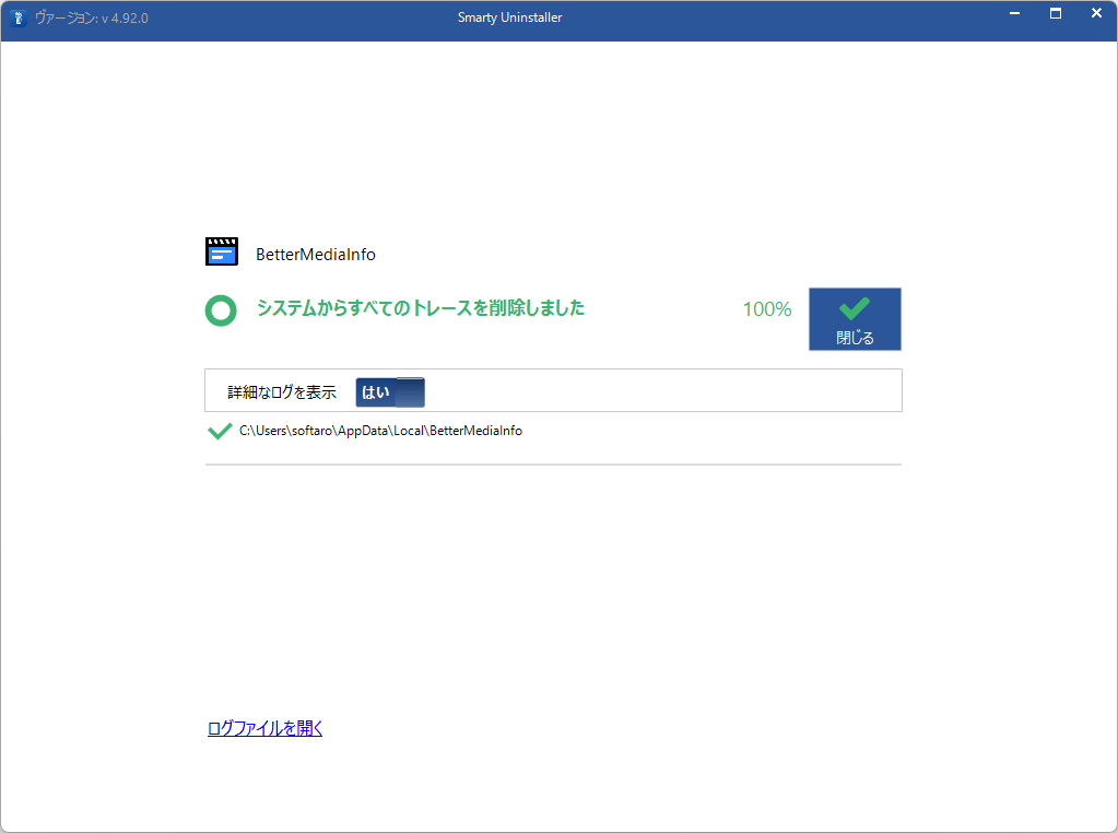 - データを残さず、アプリケーションを完全にアンインストールできます。