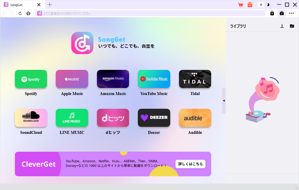 SongGet All-in-one を使用すると、Spotify、Amazon Music、Apple Music、LINE Music、YouTube Music、Tidal、Sound Cloud、d ヒッツ、Deezer、Audible などのストリーミングサービスから曲をダウンロードできます。