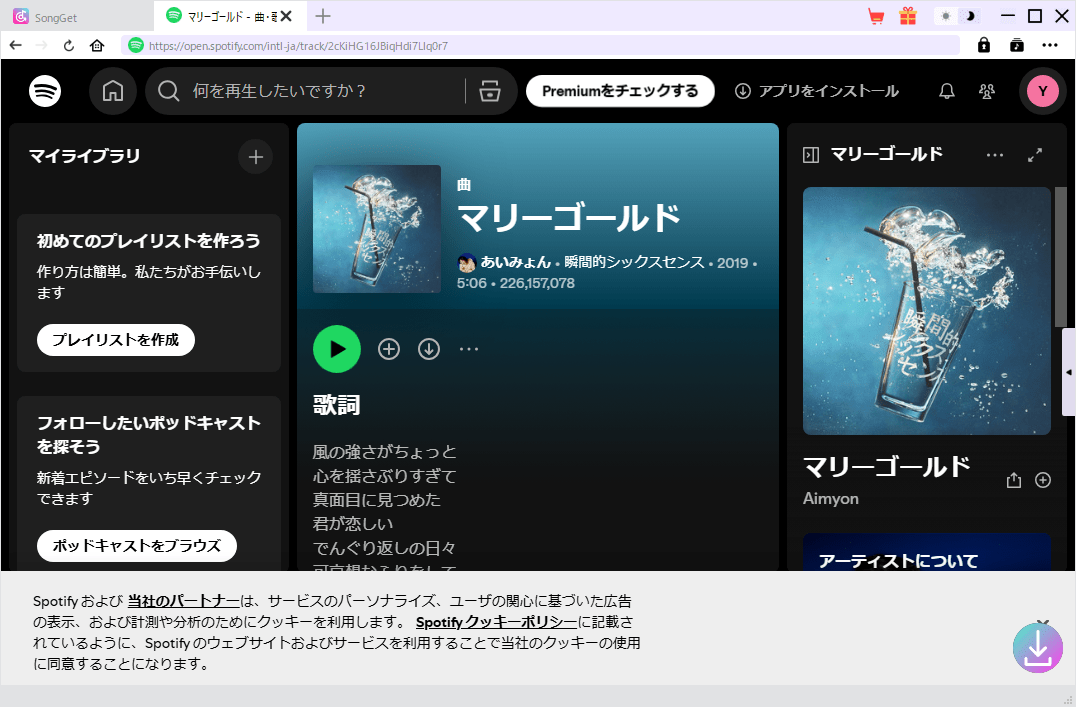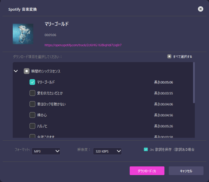 SongGet All-in-one では、シングル曲をダウンロードするだけでなく、プレイリスト、アルバム、ポッドキャストの一括ダウンロードにも対応しています。