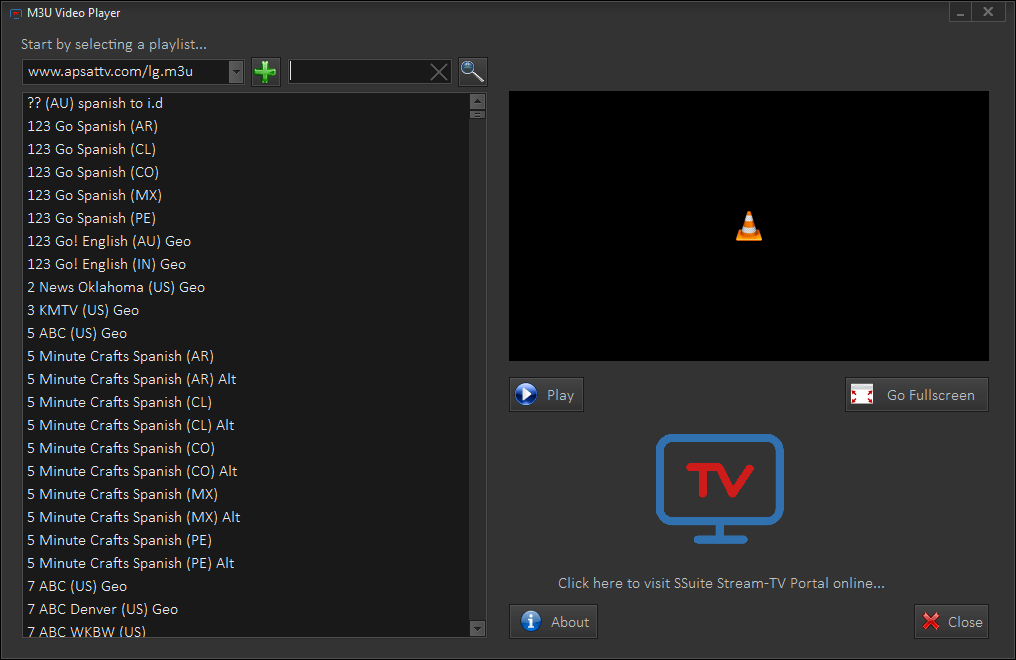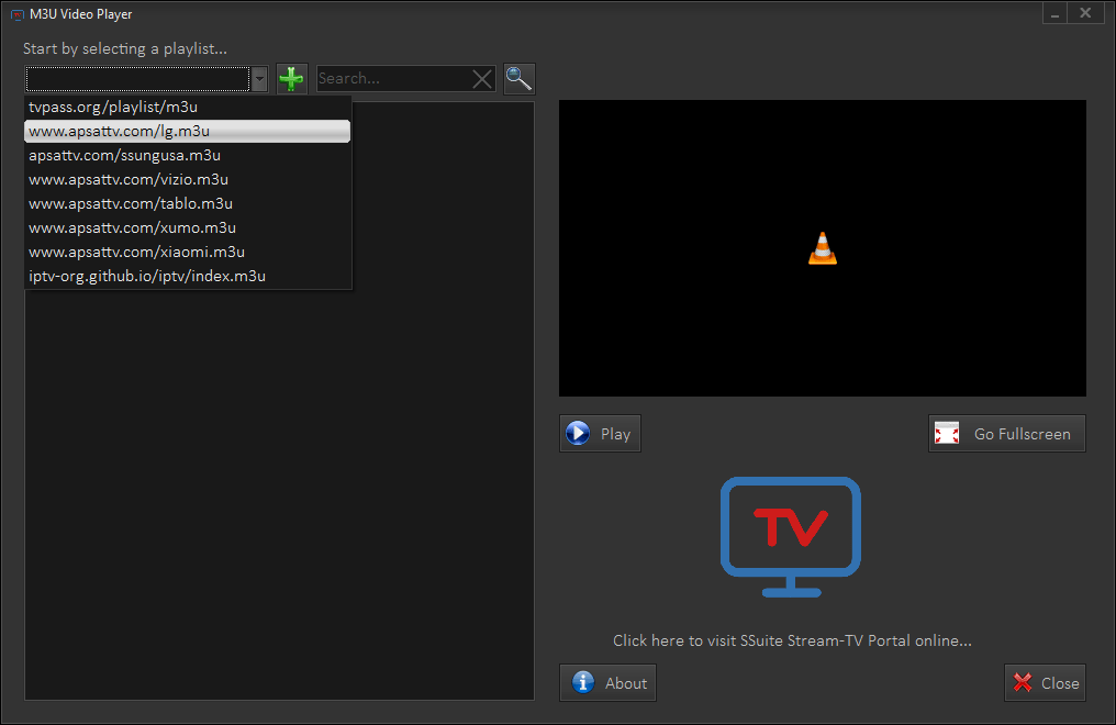 SSuite TV-App には、あらかじめ M3U 形式のさまざまな プレイリスト URL が用意されているため、URL を探す必要なく TV チャンネルを視聴できます。
