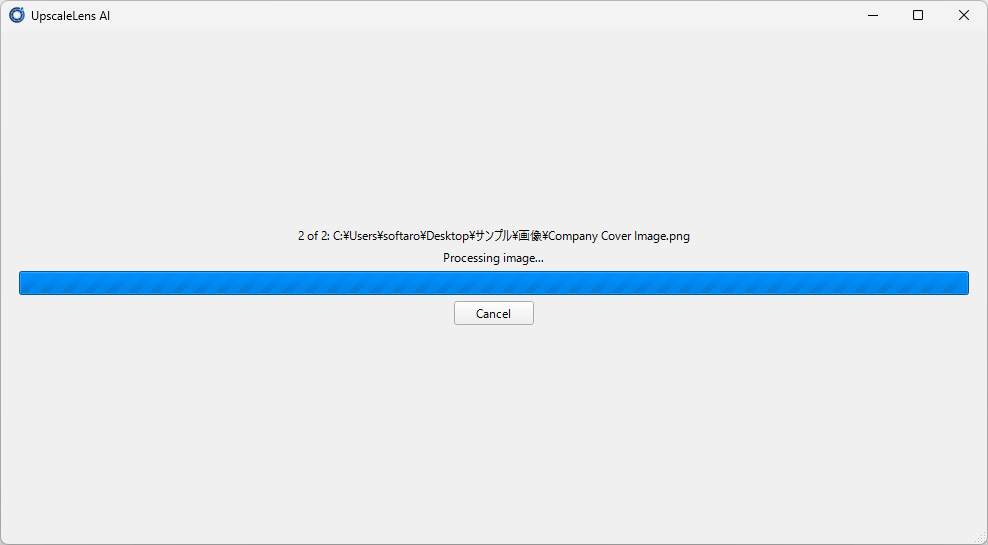 - 画像を選択して、ツールバーの[Upscale]ボタンをクリックすると、処理が開始します。