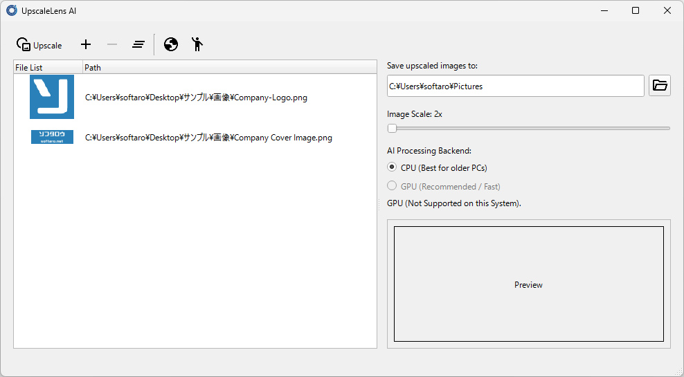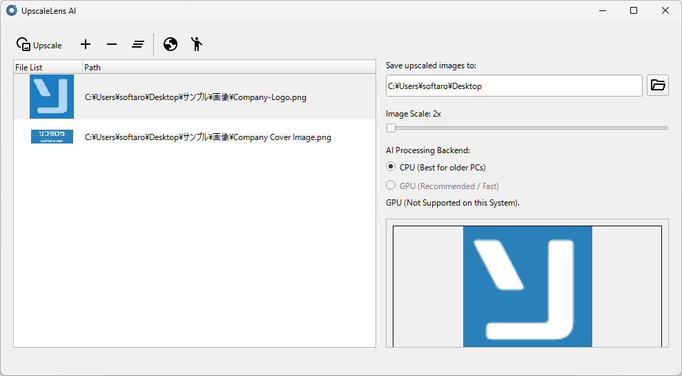 UpscaleLens AI は、使いやすさとスピード、バッチ処理の機能を備えたシンプルな画像アップスケーリングツールです。すべての処理はお使いの PC 内で行われるのでプライバシー的にも安全です。