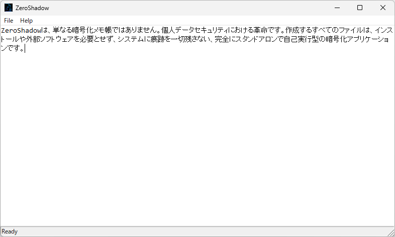 ZeroShadowZeroShadow は、テキストのデータを暗号化して保存しておくことができる、自己完結型の暗号化メモ帳アプリです。